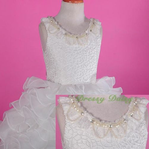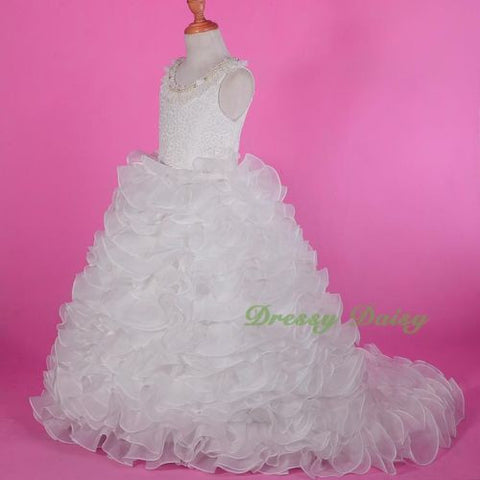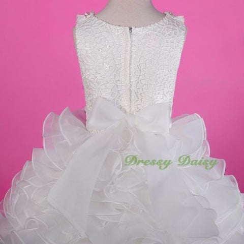 FG238 Girls Lace Organza Ruffle Tiered Party Flower Girl Dresses Ball Gown Size 2-10